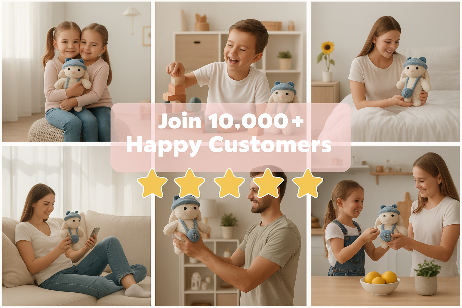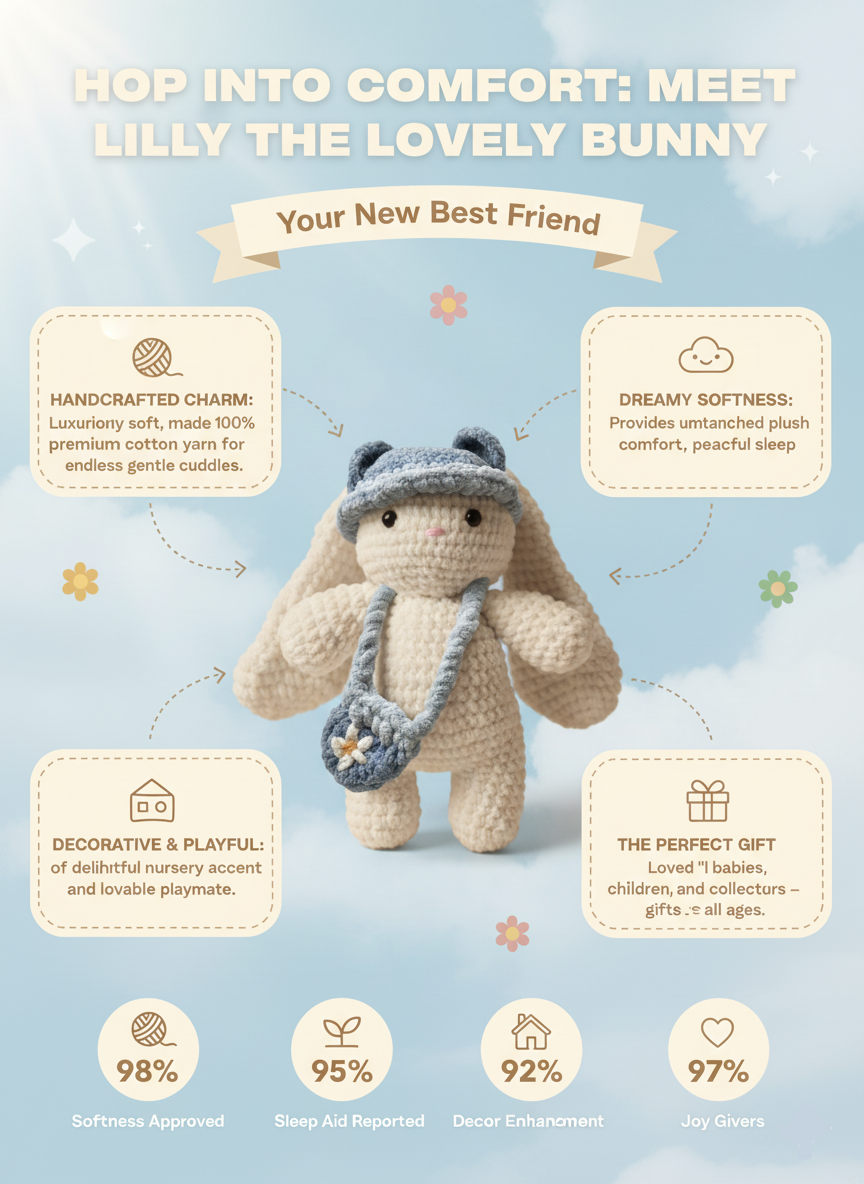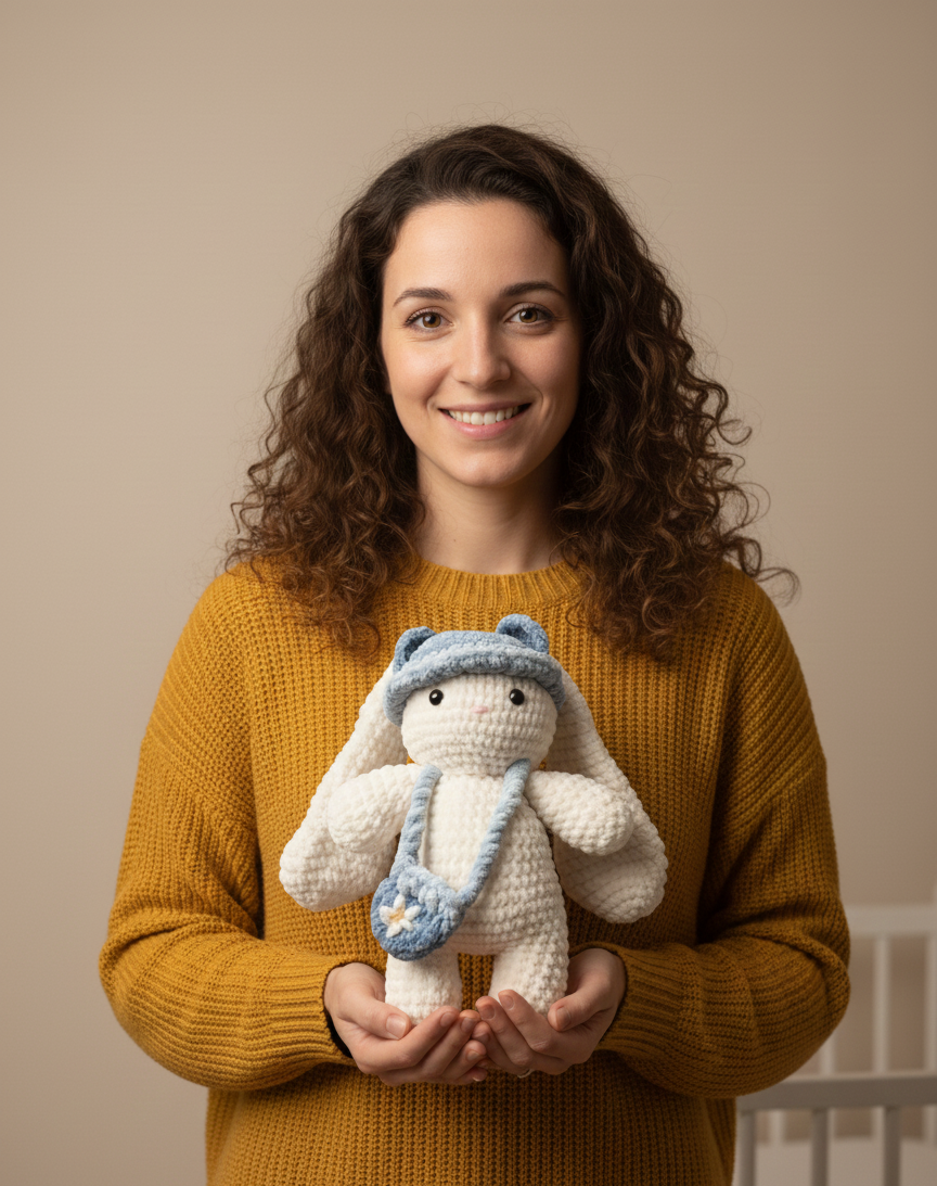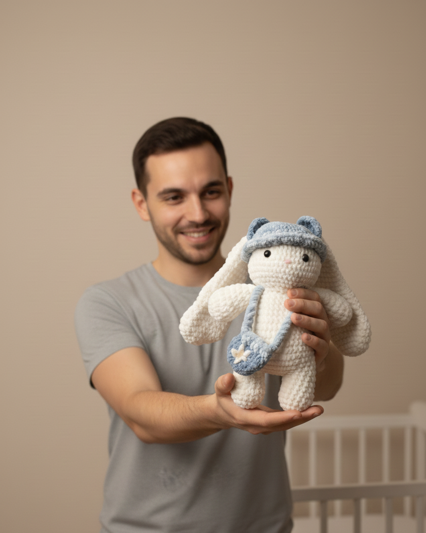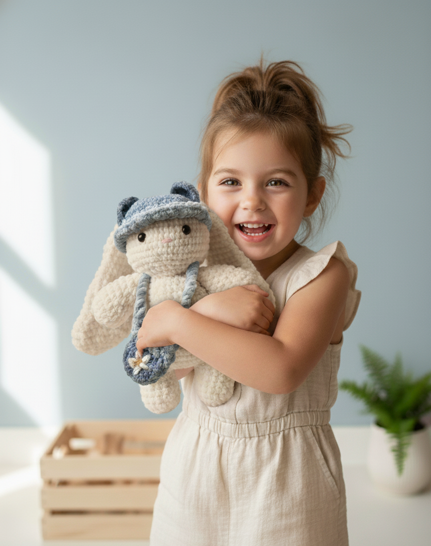 My son can’t sleep without his Bunny Boonie The soft yarn and cute accessories make bedtime magical.