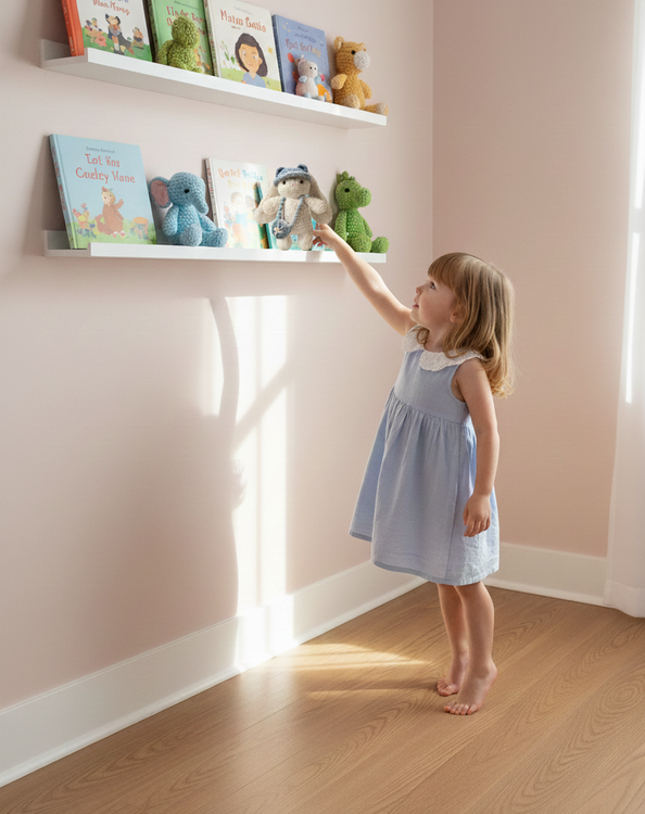 Color Palette: A serene combination of creamy white and soft sky-blue, perfect for a calming and sophisticated nursery theme.